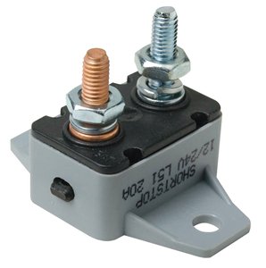 Seachoice Manual Circuit Breaker. More: 12 / 24V DC; Type III manual reset; Plastic body with molded mounting brackets; Two 10 / 32 threaded studs; Push to reset; Ideal for trolling motor installation. Order Today! Seachoice Manual Circuit Breaker, 50-amp